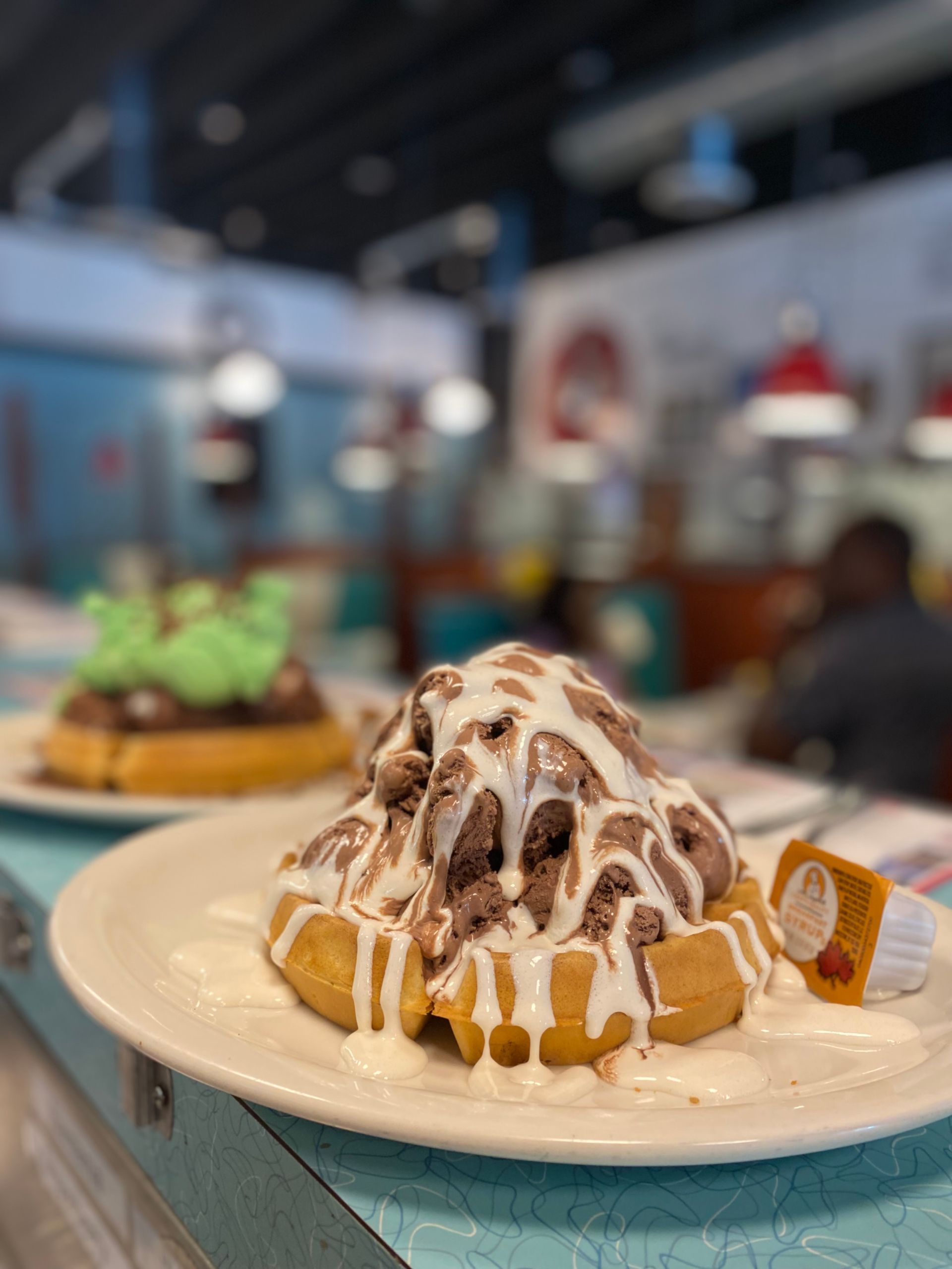 Your Choice of any Three Toppings, Two Bananas, Waffle Wedges, Whipped Cream, Sprinkles & Cherries.